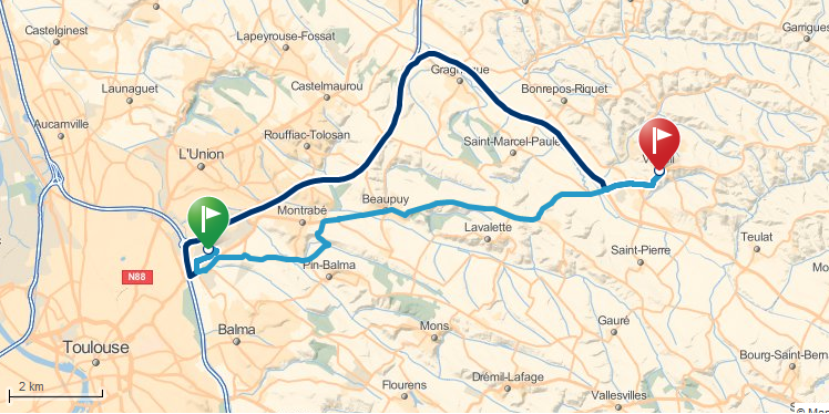 Au rond point prendre à gauche Continuer tout droit, passer Montrabé, Beaupuy